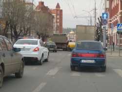 Столкнувшиеся примерно полтора часа назад в центре Саратова машины создали мучительную пробку на улице Горького в Саратове: движение фактически заблокировано, скорость потока не превышает пяти километров в час.