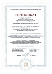 По итогам трехдневной работы Поволжскому институту управления РАНХиГС выдан сертификат о прохождении внешней экспертизы образовательных программ по стандартам и критериям, установленным Национальным центром профессионально-общественной аккредитации в соответствии с Европейскими стандартами гарантии качества образования ESG-ENQA. По результатам внешней экспертизы будет подготовлен отчет и даны рекомендации по дальнейшему развитию программ.