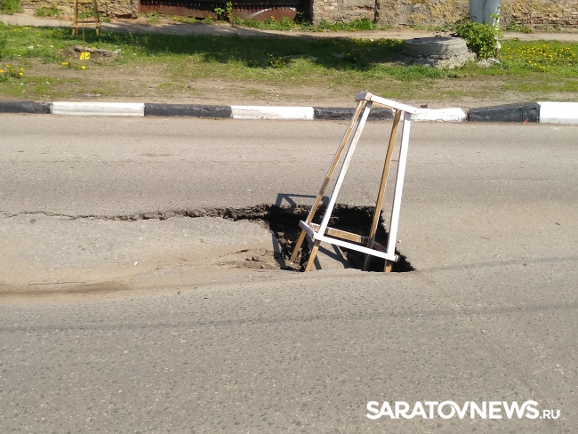 Ямы на дорогах Саратова стали уже обыденностью. Неравнодушные водители то и дело затыкают их упавшими деревьями, отмечают ветками и ярким тряпьем. В крупные провалы регулярно попадают машины.