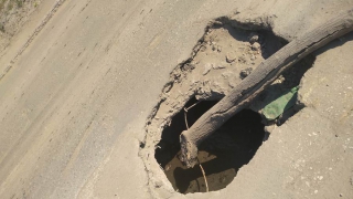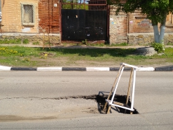 В центре Саратова, у дома № 5 в Рабочем переулке появилось очередное предупреждение о провалившемся асфальте. Поставленную прямо посреди проезжей части деревянную конструкцию сегодня сфотографировал и снял на видео наш постоянный читатель.