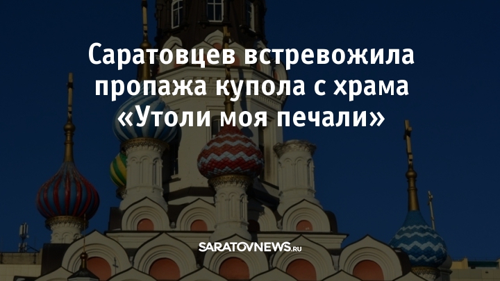 Один из самых известных православных храмов Саратова «Утоли моя печали» лишился одного из куполов. Фотографии с вопросом "Где купол"? сегодня появились в нескольких группах и каналах Саратова в соцсетях. Обыватели начали строить версии, порой откровенно глумливые и саркастичные. Saratovnews выяснили, что произошло с куполом.