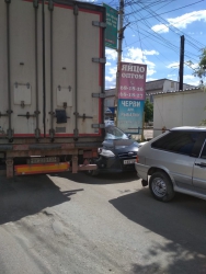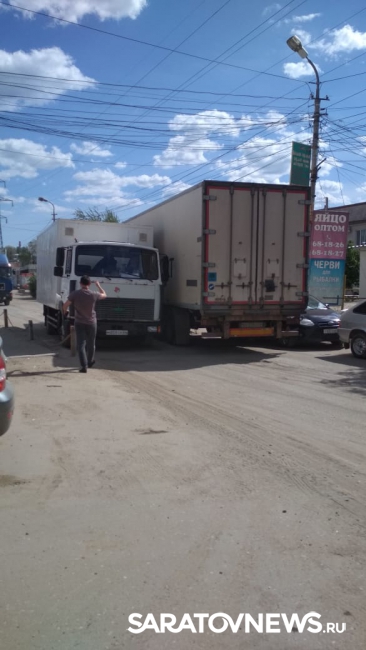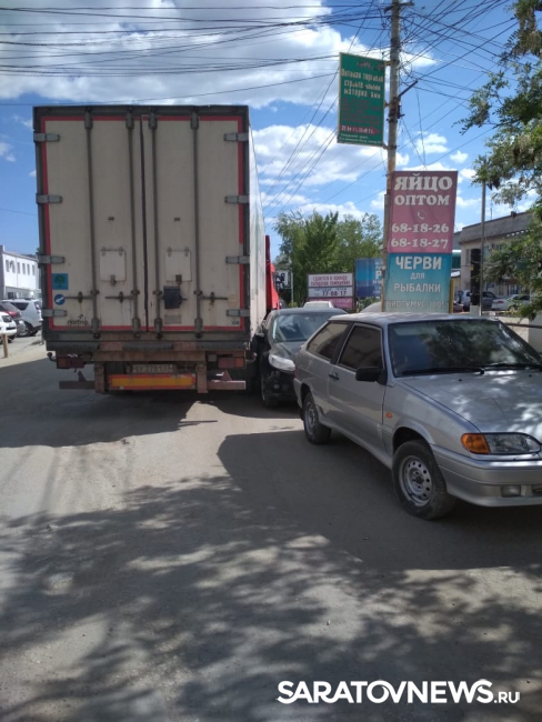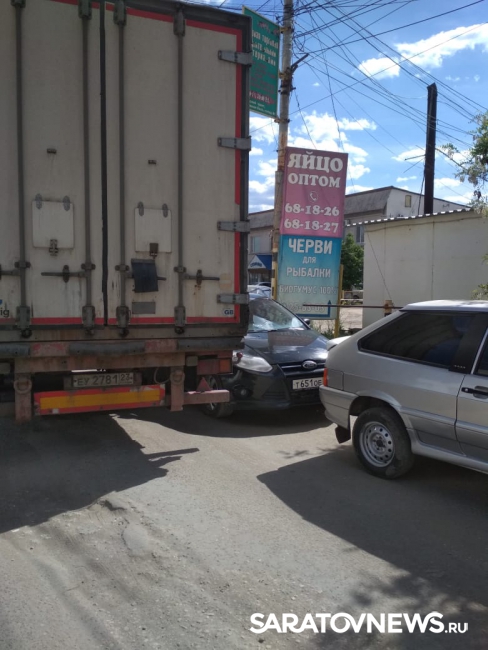 Несколько минут назад в Саратове на Сокурском тракте фура въехала в припаркованный на обочине "Форд" и почти полностью перекрыла движение. Это произошло неподалеку от въезда на территорию предприятия "Саратов-холод", передает корреспондент Saratovnews с места аварии.