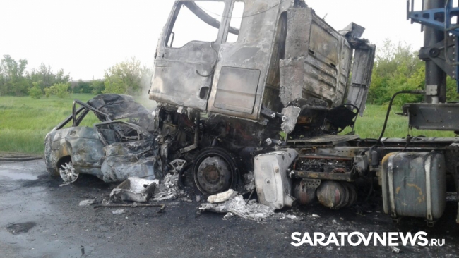 ДТП произошло на 206-м километре автодороги Самара - Пугачев - Энгельс - Волгоград, недалеко от переезда через железную дорогу у станции Иргиз. 25-летний водитель ВАЗ-2112 выехал на полосу встречного движения и лоб в в лоб столкнулся с большегрузом MAN, которым управлял 34-летний дальнобойщик. После удара обе машины загорелись. Водитель легковушки погиб в огне. Второй участник ДТП за медицинской помощью не обращался.