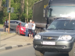 Большегруз выезжал с Технической на улицу Навашина и его водитель, судя по всему, не вписался в поворот. "Мерседес" правым бортом зацепил шедший рядом "Опель" и вытолкнул его на тротуар