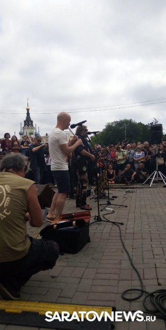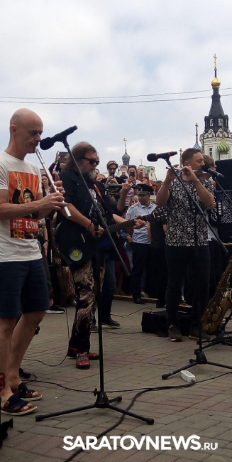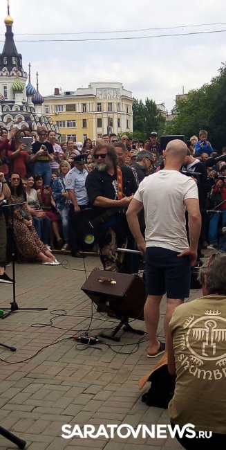 Только что возле саратовской консерватории на проспекте Кирова закончился получасовой бесплатный концерт знаменитого музыканта Бориса Гребенщикова. На нем прозвучало попурри из известных песен рок-музыканта, выступление своеобразным подарком саратовцам и гостям города. Горожане по достоинству оценили творчество музыканта: посмотреть на легенду отечественной музыки собрались сотни саратовцев, появление Гребенщикова и его музыкантов вызвало настоящий ажиотаж.
