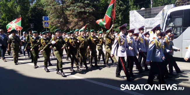 Сегодня в Саратове прошло шествие, посвященное Дню пограничника. Его участники прошли от площади Чернышевского до улицы Московской и по ней в сторону набережной. Действо запечатлел корреспондент Saratovnews.