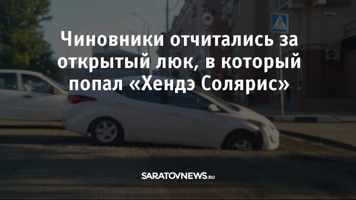Четыре дня назад на пересечении улиц Радищева и Гоголя автомобиль «Хендэ Солярис» попал передним колесом в открытый люк. После критической публикации в «SaratovNews» администрация Волжского района города Саратова сообщила, что подрядная организация комитета дорожного хозяйства, благоустройства и транспорта занимается ремонтом дорожного полотна и что опасный провал на перекрёстке уже устранён.
