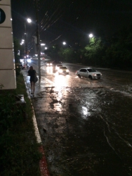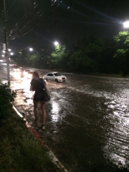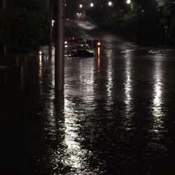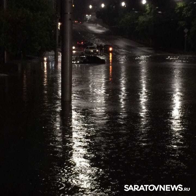 Фотографии с места инцидента появились во ВКонтакте, комментаторы уверяют, что с потоком воды не справилась ливневка, но к утру вода с дороги ушла.