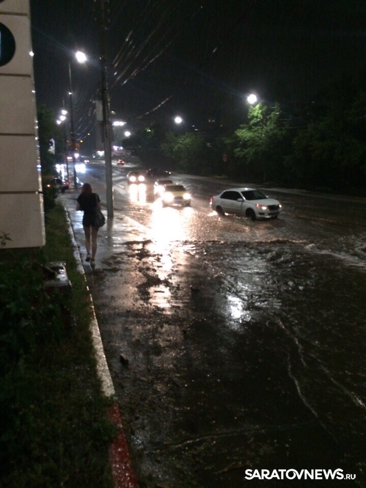Этой ночью несколько машин буквально смыло с дороги в Кировском районе Саратова. Довольно бурный поток воды лил вскоре после полуночи по улице Танкистов от памятника-танка вниз, к заводу "Медтехника". В него попало несколько автомобилей, ВАЗовскую малолитражку залило буквально по зеркала, она потеряла управление и буквально поплыла по дороге.