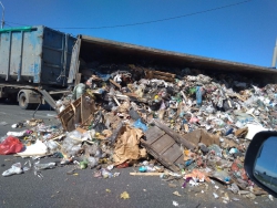 Сейчас на месте работают сотрудники ГИБДД. Также предстоит решить вопрос с очисткой дороги от рассыпавшегося мусора.