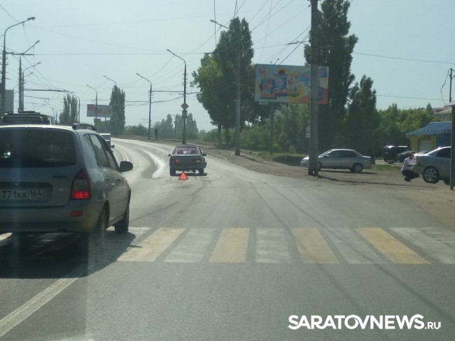 В аварии у отечественной легковушки сильно поврежден капот и передний бампер, у иномарки слегка разбита задняя часть. Пустой автомобиль такси после столкновения остался на проезжей части - людей ни в нем, ни возле него не видно. Японскую иномарку отбросило к магазину "Ява", возле нее ходит молодой человек, возможно, это - ее водитель, сообщил Saratovnews очевидец с места происшествия.