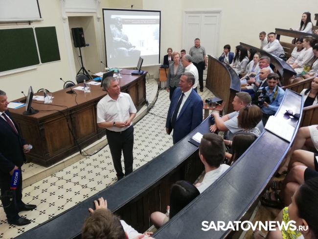 Володин поинтересовался планами на будущее у студентки, которая приехала учиться в СГМУ из Перелюба, тут же вспомнил, что главврач тамошней районной больницы - однокурсник ректора СГМУ Владимира Попкова и попросил девушку передать привет от одного однокурсника другому.