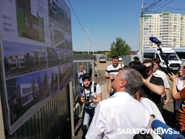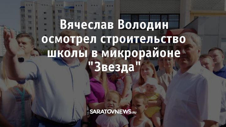 Председатель Госдумы РФ Вячеслав Володин, который сегодня работает в своем избирательном округе, в этот момент осматривает строительную площадку в микрорайоне "Звезда" на территории Кировского района Саратова. Здесь началось строительство школы с бассейном на 825 мест и детского сада, способного принять 160 детей. На отсутствие учебных заведений в носвом микрорайоне пожаловались его жители, после этого Володин сумел изыскать деньги на строительство: из федерального бюджета на школу выделили 776,2 миллиона рублей, на детский сад - 123 миллиона.