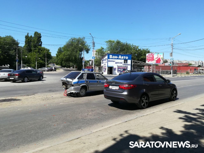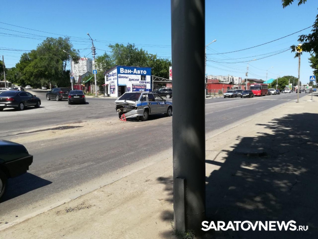 Сегодня в Саратове в аварию попала машина патрульно-постовой службы. Об этом Saratovnews сообщил очевидец происшествия.