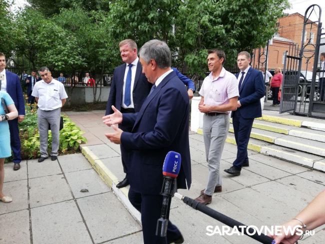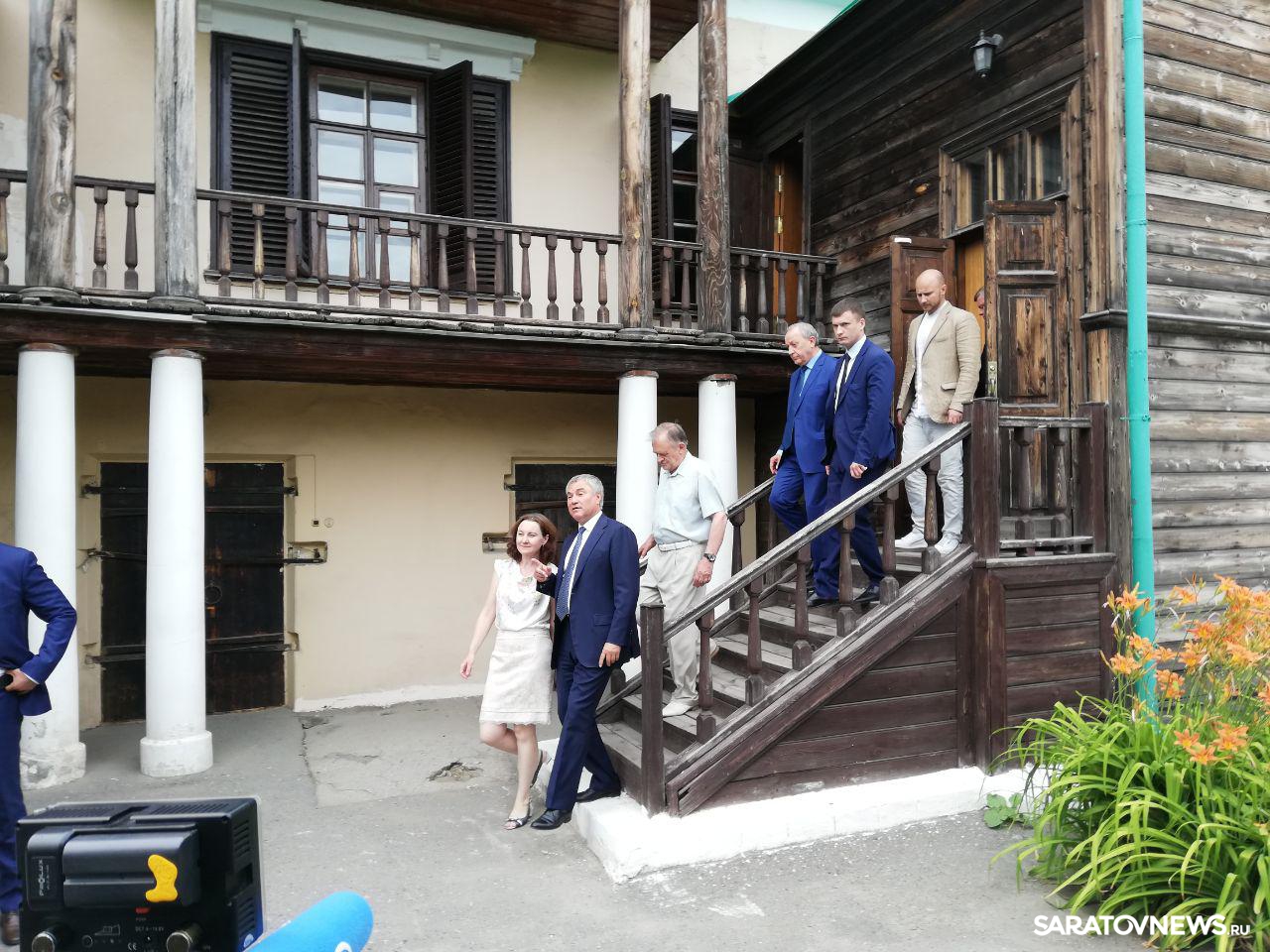 Председатель Государственной Думы РФ Вячеслав Володин сегодня работает в Саратовской области. Свою программу он начал с осмотра музея-усадьбы Н. Г. Чернышевского. В этом доме он довольно долго жил, здесь и скончался. Музей — один из 23 объектов в Саратовской области, попавших в программу реконструкции, которую инициировал Володин.