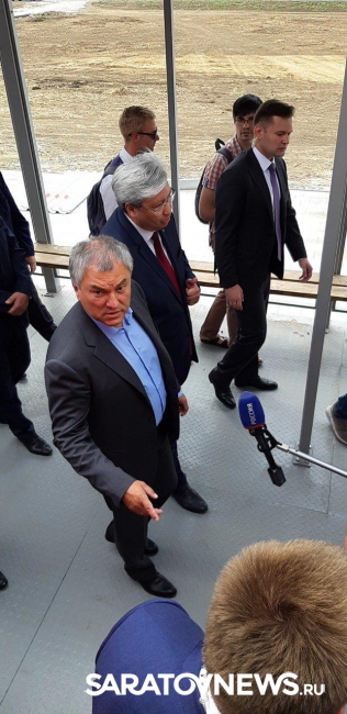 Председатель Госдумы Вячеслав Володин, который в эти минуты осматривает достраивающийся возле Сабуровки аэропорт "Центральный" и окружающую его инфраструктуру, остался недоволен состоянием остановочной платформы, к которой будут подходить подвозящие авиапассажиров из Саратова электрички. Он попросил представителей РЖД сделать остановочную платформу комфортнее.