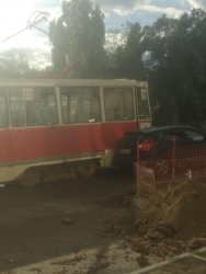 Примерно час назад в Кировском районе, недалеко от перекрестка улиц Танкистов и Навашина трамвай 11-го маршрута протаранил легковой "Форд". Об этом Saratovnews сообщил очевидец происшествия.