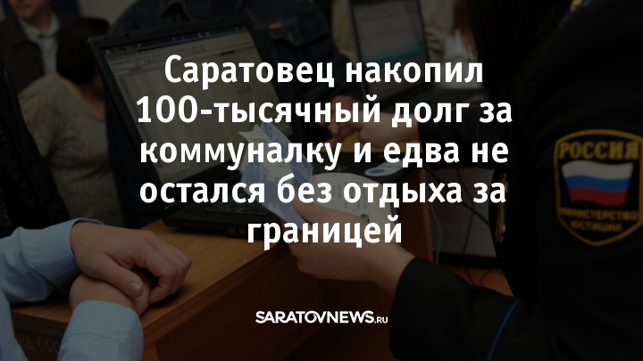 Житель Саратова накопил более ста тысяч долга по коммунальным услугам. Получить с него деньги получилось только после того, как мужчине запретили выезжать за границу. Об этом сообщили в управлении федеральной службы судебных приставов России по Саратовской области.