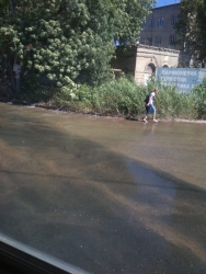 Вода уже по щиколотку залила дороги в окрестностях предприятия "Холод Плюс". Переходить ее сейчас сейчас довольно трудно. Люди уверяют, что поток выходит с территории расположенного неподалеку хлебозавода.