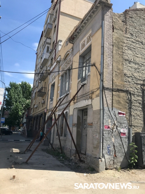 Состояние особняка Соколовых-Захаровых (дом № 57 на улице Советской в Саратове) стало предметом активного обсуждения саратовцев в соцсетях. Памятник культуры регионального значения, который несколько лет назад признали аварийным, пользователи заметили после того, как убрали забор из профлиста, скрывавший особняк от глаз обывателей. Здание, фасад которого подпирают швеллеры, тут же сфотографировали, снимок опубликовали сегодня ВКонтакте.