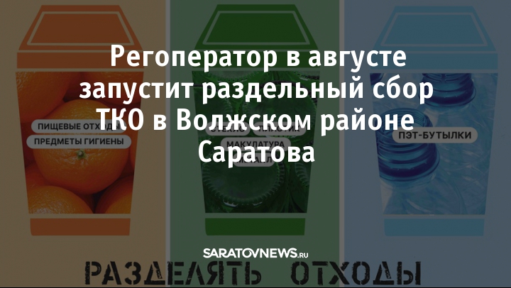 В августе этого года в Волжском районе Саратова будет организован раздельный сбор твердых коммунальных отходов, сообщает пресс-служба АО «Управление отходами».