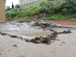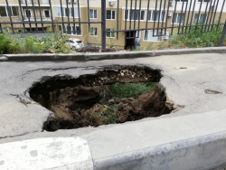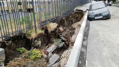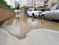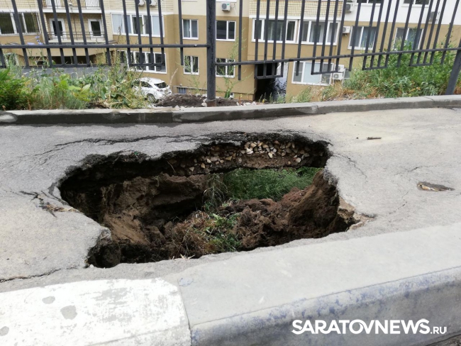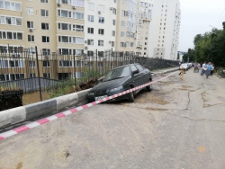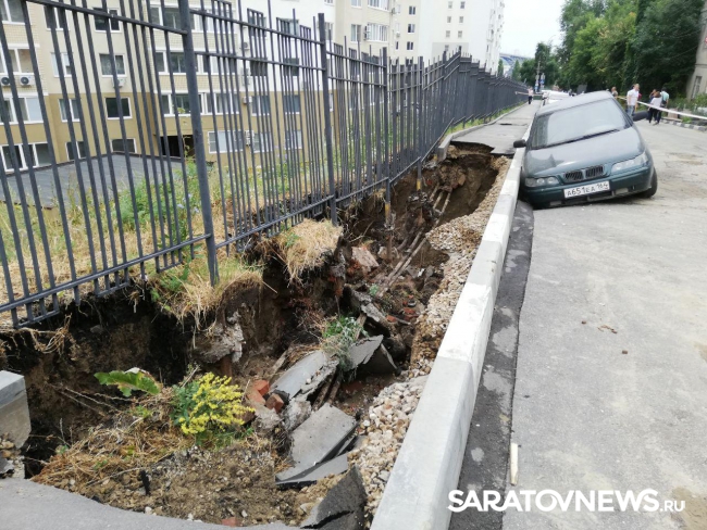 Вчера вечером в центре Саратова, недалеко от перекрестка улицы Валовой и Песковского переулка произошла коммунальная авария. Из-за прорыва трубы размыло тротуар примерно на десятке метров, просел асфальт на проезжей части, в яму провалился ВАЗ 2110. Вода залила двор дома № 12 на Валовой.