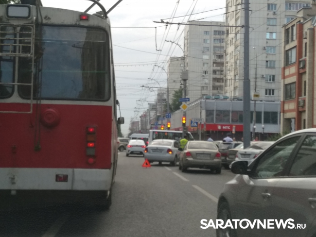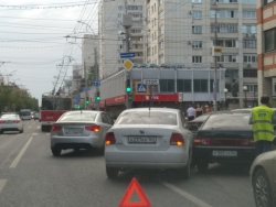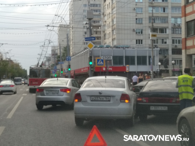Только что в центре Саратова притерлись "Фольксваген Поло" и ВАЗ 2110. Водители, похоже, не поделили парковочный карман и устроили затор, сообщает корреспондент Saratovnews с места происшествия.