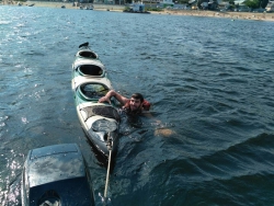 Происшествие случилось в 17:10. В акватории у поста спасателей компания молодых людей на байдарке попала в передрягу. Их плавательное средство перевернулось и набрало воды, забраться в байдарку молодые люди самостоятельно не смогли, отбуксировать ее к берегу тоже. Им помогли сотрудники службы спасения.