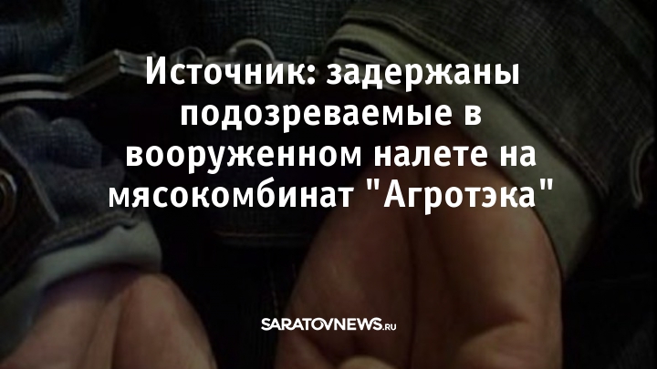 Сегодня задержаны люди, которых подозревают в разбойном нападении на мясокомбинат фирмы "Агротэк" в селе Генеральское Энгельсского района. Об этом SaratovNews рассказал источник в одном из разрабатывавших преступление ведомств, информацию на условиях анонимности подтвердили в другом.