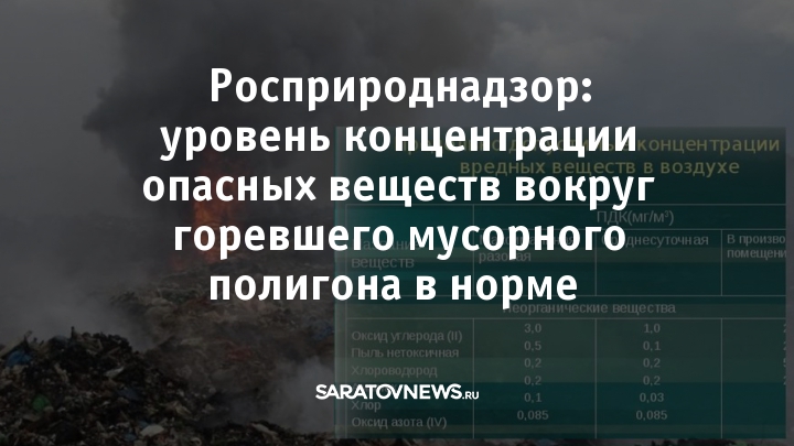 По информации Управления Росприроднадзора по Саратовской области, превышений предельно допустимых концентраций загрязняющих веществ вблизи полигона ТКО не наблюдалось уже 22 июля. В период активного горения отходов 21 июля специалисты зафиксировали превышения ПДК по бензолу и оксиду углерода.