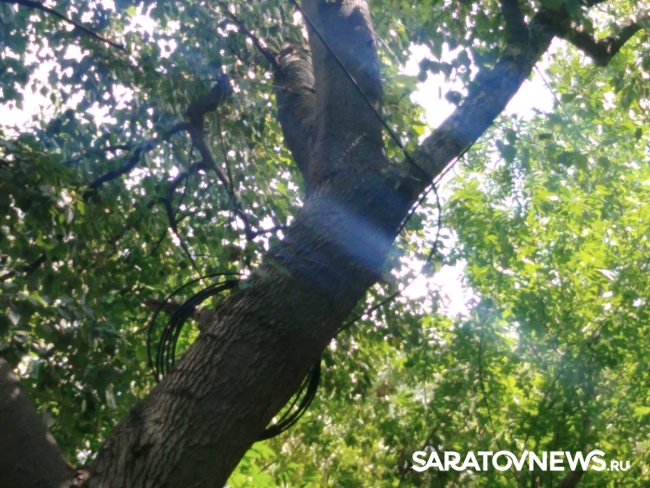 В Заводском районе Саратова нашли опасно проложенный силовой электрокабель. Он тянется поветвям деревьев и трубам отопления в 3-м Кавказском тупике. Фотографии, подтверждающие это, опубликовала во ВКонтакте местная жительница.