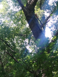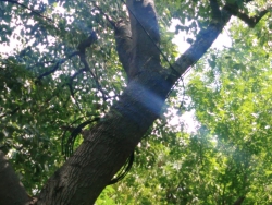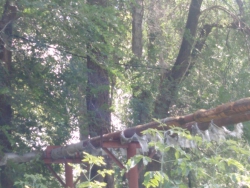 Женщина уверяет, что опасный провод тянется несколько десятков метров и не просто висит на ветках деревьев, но местами явно закреплён на них. Автор записи опасается короткого замыкания или того, что провод оборвётся и кого-то может ударить током.