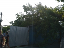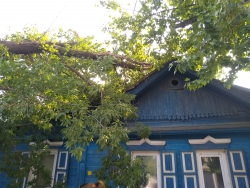 Пострадал частный дом №193 на Соколовой. Ствол дерева упал на его крышу и сильно повредил ее. Чудом никто из местных жителей не пострадал. Обитатели дома уже вызвали представителей экстренных служб.