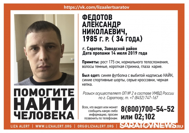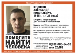 В Заводском районе Саратова без вести пропал 34-летний Александр Федотов. Родные последний раз видели мужчину 14 июля. Объявление о его розыске опубликовали на ресурсах поискового отряда "Лиза Алерт Саратов".