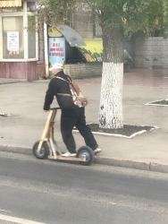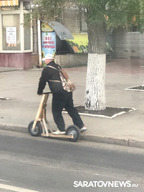 Пожилой мужчина на деревянном самокате, фотография которого сегодня гуляет по саратовским группам ВКонтакте, восхитил пользователей соцсетей. Мужчину сфотографировали в Саратове на улице Астраханской.
