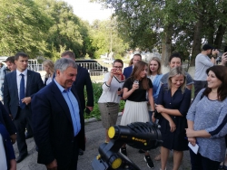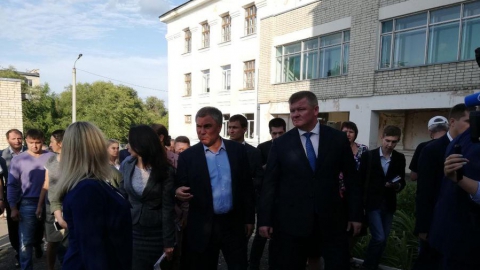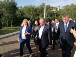 Осмотрев территорию школы и школьный двор, Вячеслав Володин поинтересовался, сколько времени потребуется на ремонт спортивной площадки. Депутат госдумы Николай Панков ответил, что она будет готова в октябре. Ответ спикера удовлетворил.