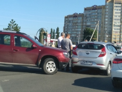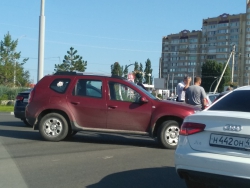 На перекрестке с круговым движением столкнулись Renault Duster и Hyundai Solaris. Обе машины ехали в сторону Усть-Курдюма. Из-за того, что автомобили перегородили две полосы дороги, на шоссе образовалась большая пробка.