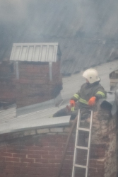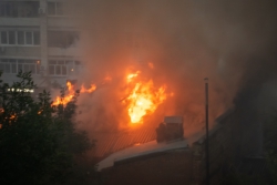 Пожар начался около 05:00 утра. На тушение пожара выезжало 23 огнеборца на пяти специальных автомобилях. Горела крыша на площади 70 квадратных метра.