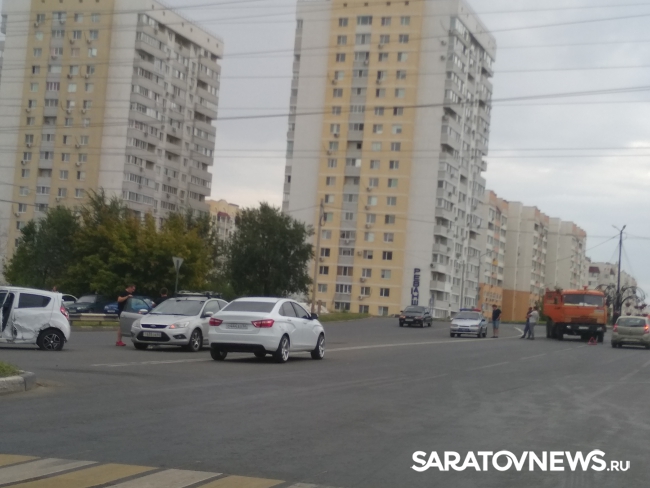 Сегодня в Саратове на пересечении улиц Антонова и Топольчанской столкнулись три автомобиля. Свидетелем аварии стал корреспондент SaratovNews.