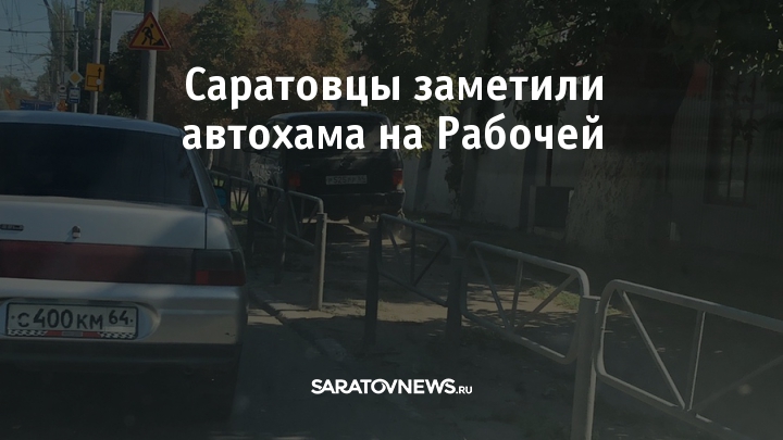 Житель Саратова сфотографировал очередного автохама на улице Рабочей. Фото опубликовано в саратовских пабликах в социальных сетях.