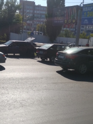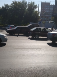 ДТП произошло недалеко от моста, который ведет на 3-ю Дачную. ВАЗ 2109, который шел в сторону проспекта Строителей, после столкновения остался посреди проезжей части, у него сильно разбит моторный отсек, из которого на асфальт течет жидкость. Вторая машина вылетела на разделительную полосу, причем ее развернуло на 180 градусов, автомобиль (предположительно ВАЗ 2114) насадило на отбойник, который вошел в салон автомобиля сзади с водительской стороны.