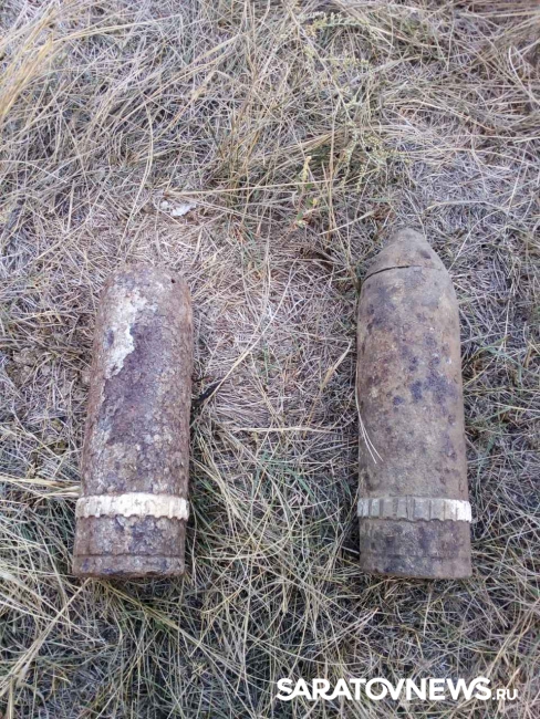 Еще два предмета, похожие на боеприпасы, были найдены в 300 метрах от села Большая Таволожка Пугачевского района. Это оказались шрапнельные снаряды образца 1915 года. Боеприпасы также уничтожили на месте.