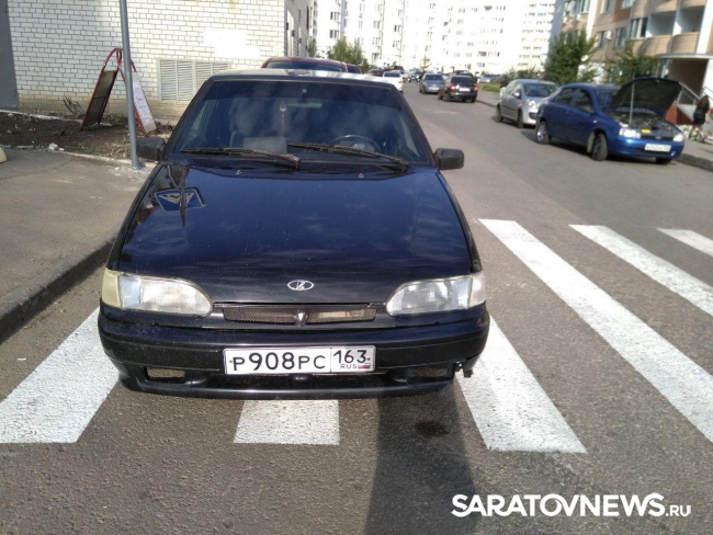 В эти минуты в поселке Солнечный-2 Саратова замечен очередной автохам. Темно-синий ВАЗ 2114 припарковали у дома № 23 на улице Батавина, рядом со школой "Аврора" по всей ширине "зебры".