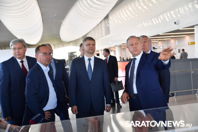 В аэропорту «Гагарин» глава региона Валерий Радаев и Олег Белозеров осмотрели новое здание терминала, железнодорожную инфраструктуру, которая была создана рядом с аэровокзальным комплексом.