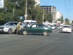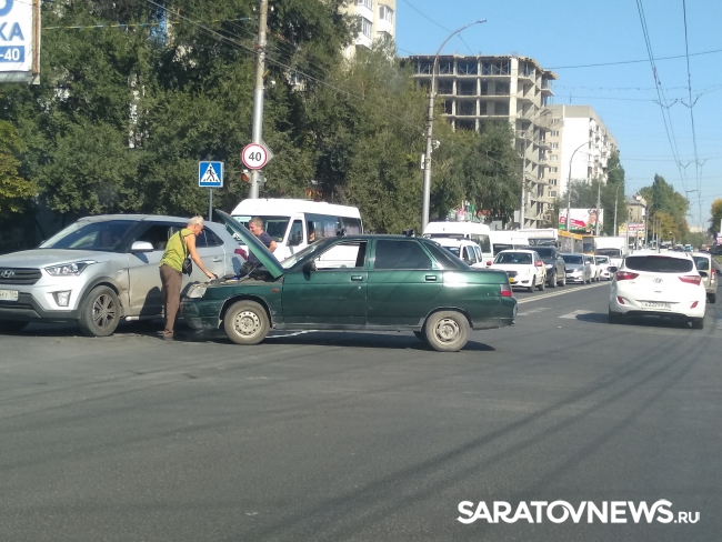Несколько минут назад в Заводском районе Саратова, на проспекте Энтузиастов столкнулись ВАЗ 2110 и внедорожник "Хендэ", передет корреспондент SaratovNews с места происшествия. Это произошло неподалеку от общежития саратовской консерватории и бани № 16, рядом с остановкой общественного транспорта "4-й жилучасток".