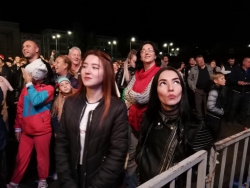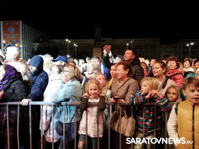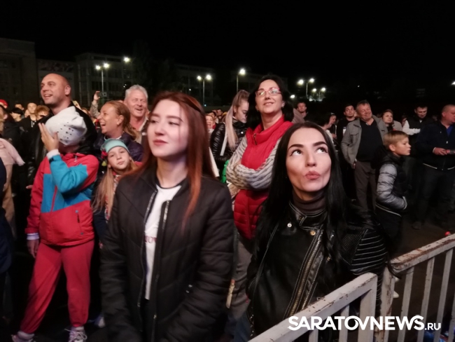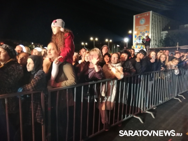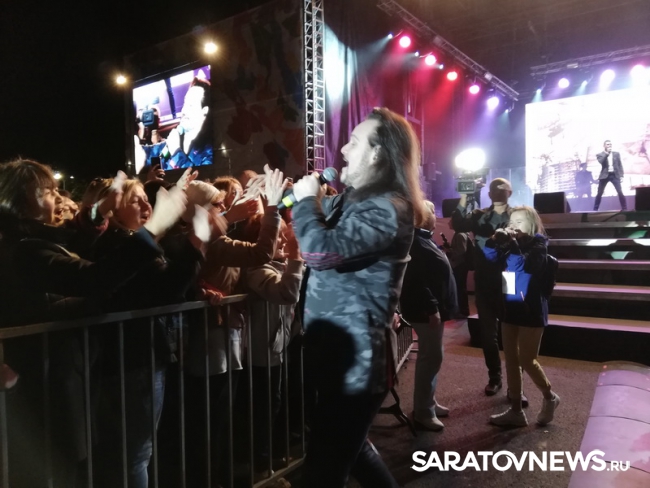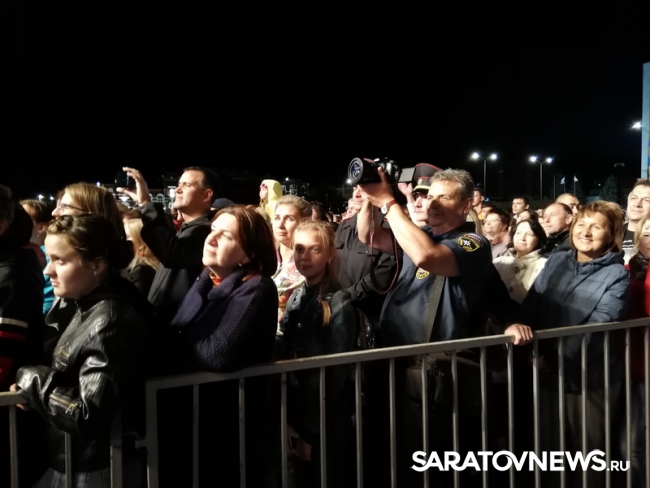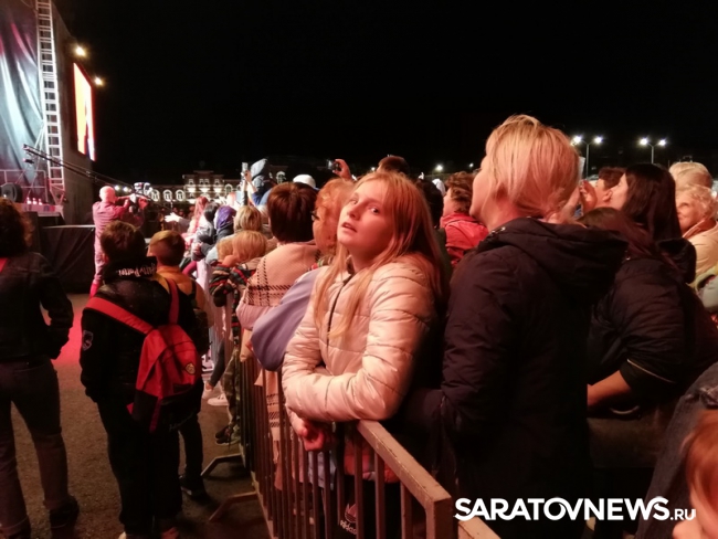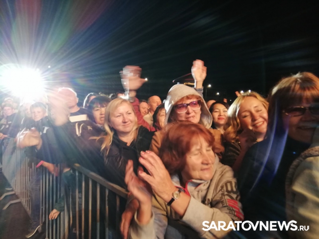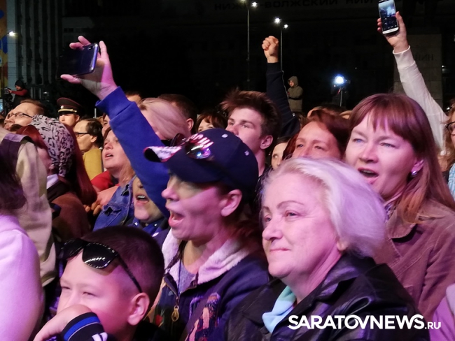 Саратовцы, собравшиеся на концерт Хора Турецкого, подпевают артистам. За перформансом наблюдает корреспондент SaratovNews.