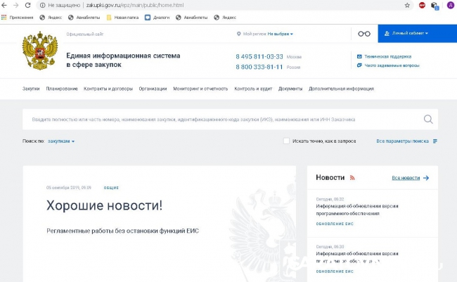 Сайт государственных закупок в эти минуты работает с перебоями. Например, если ввести одну формулировку запроса, он выдаст необходимую информацию, но если формулировка будет другой, сайт перенаправит на страницу с информацией о том, что сайт временно недоступен.