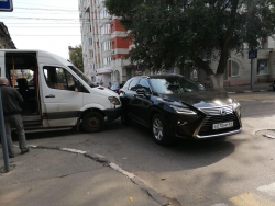 Полчаса назад на пересечении улиц Чернышевского и Первомайской столкнулась маршрутка и Lexus, сообщает корреспондент ИА SaratovNews.