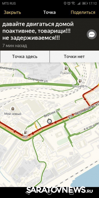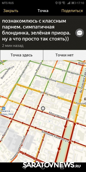 Коротая время в заторах, саратовцы развлекаются тем, что пишут комментарии в сервисе «Яндекс.Пробки». В основном они вспоминают прошлую зиму, когда из-за сильных многодневных снегопадов по Саратову невозможно было проехать на автомобилях, но некоторые проявляют больше фантазии. Например, блондинка на зеленой Lada Priora предлагает познакомиться, а другой водитель продает книгу о Гарри Поттере за 150 рублей. Самые интересные комментарии - в скриншотах ниже.