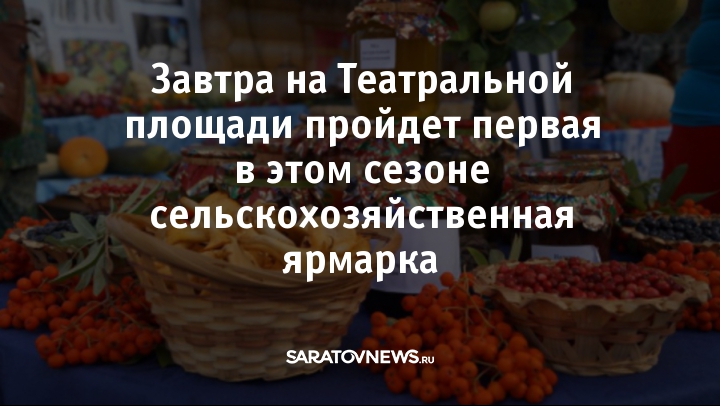 Завтра на Театральной площади Саратова начнет свою работу первая в этом сезоне ярмарка продукции сельского хозяйства, сообщает пресс-служба регионального минсельхоза.